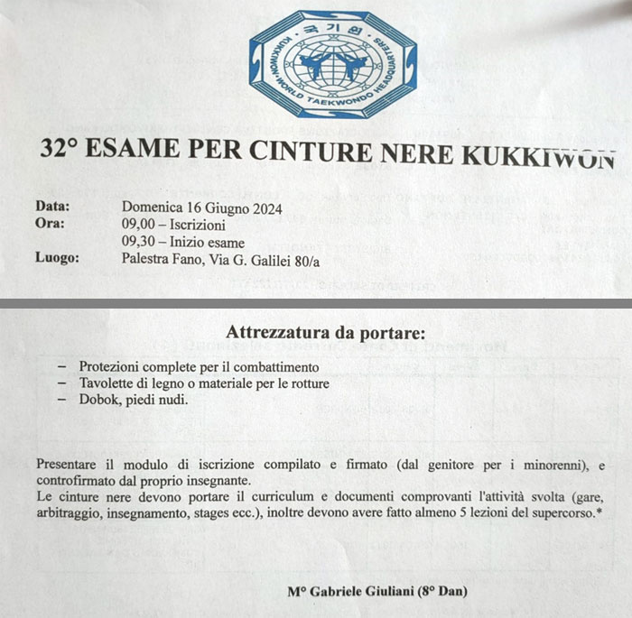 L’esame per cinture nere (DAN) è consentito solo previa autorizzazione del proprio Maestro.